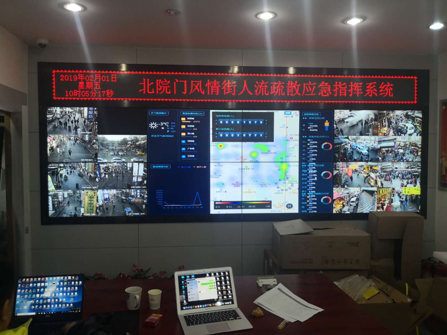 蓮湖區旅游局從2016年5月開始啟動建設北院門風情街數字化指揮系統,于當年端午節建成投入使用。作為國內第一家實現智能化應急指揮的開放式街區,二期項目基于騰訊地理位置數據對整套應急指揮系統進行二次開發,主要解決了北院門歷史文化街區大規模人群短時間聚集的監測管理難點問題。